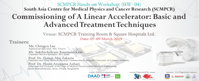 The workshop took place from 7 to 9 March 2019 at the SCMPCR Training Room and Square Hospitals Ltd.. This session was specifically designed to enhance the clinical experience and theoretical knowledge of medical physicists regarding absolute and relative dosimetry of high-energy photon and electron beams using automated beam commissioning technology.