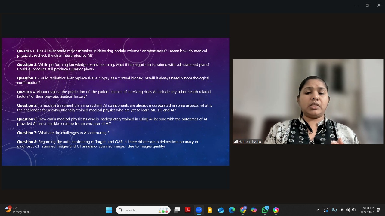 | 3 | Artificial Intelligence in Radiation Medicine | 7 November (Friday), 2:30 PM – 3:30 PM (GMT) |